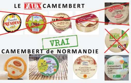 Dacă credeți că sunteți un profesionist adevărat, într-un restaurant sau într-un magazin de delicatese, aflați mențiunea de referință a Camembert-ului adevărat: căutați ”Camembert de Normandie” și uitați de „Fabriqué en Normandie”! Camembert de Normandie este singurul care beneficiază de AOC – denumire de origine controlată, el este adevăratul Camembert! Acesta este protejat de AOP, recognoscibil printr-o ștampilă roșie cu galben. Este în mod obligatoriu obținut din lapte proaspăt de vacă din Normandia și turnată în matrițe așa cum spune tradiția. Calitățile sale gustative sunt mult mai puternice decât versiunile sale obținute din lapte pasteurizat.
