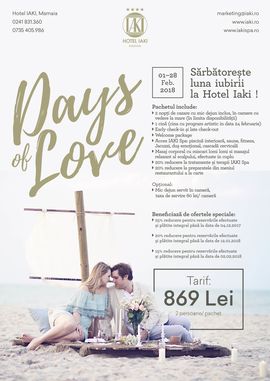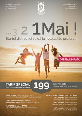Hotel Iaki si Iaki Spa pregatesc permanent pachete promotionale, sejururi, abonamente, reduceri early booking prin care va puteti bucura simultan de confortul spatiilor de cazare, calitatea de exceptie a serviciilor si terapii in cadrul centrului wellness. In fiecare sezon si in fiecare moment important al vietii dvs. merita sa veniti la Iaki!